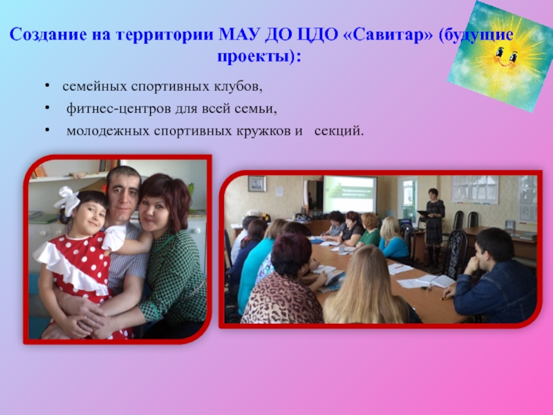 Слайд 14Создание на территории МАУ ДО ЦДО «Савитар» (будущие проекты):