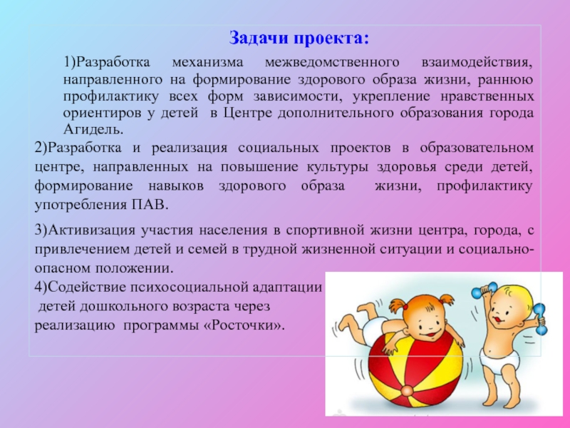 2)Разработка и реализация социальных проектов в образовательном центре, направленных на повышение культуры здоровья среди детей, формирование навыков здорового образа жизни, профилактику употребления ПАВ.