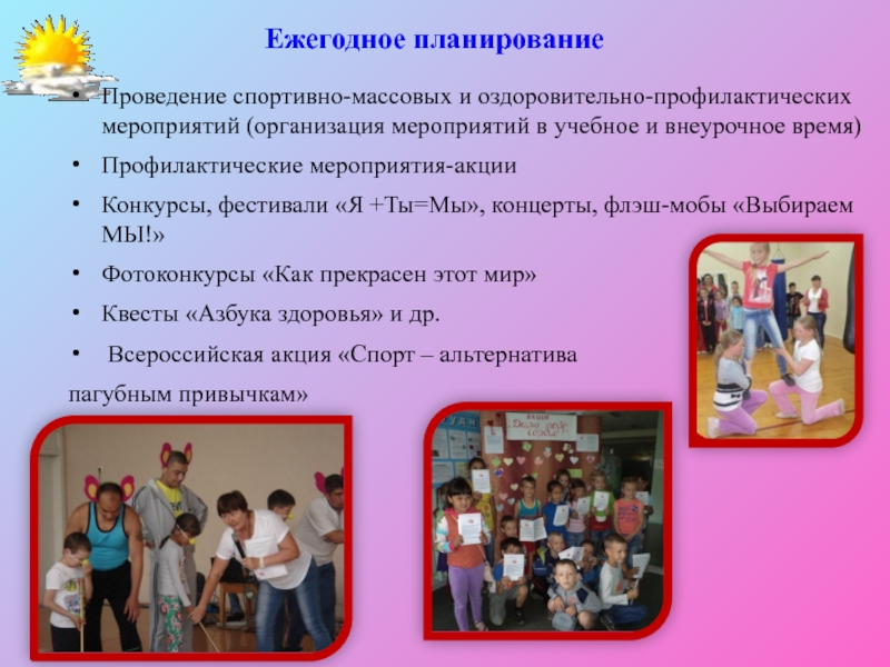 Проведение спортивно-массовых и оздоровительно-профилактических мероприятий (организация мероприятий в учебное и