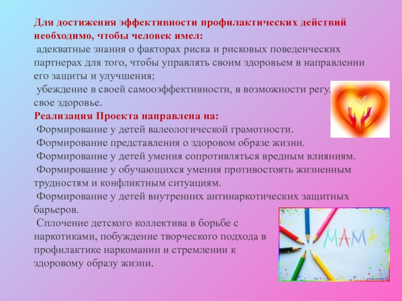 Формирование у детей внутренних антинаркотических защитных барьеров.