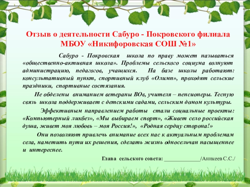 Защита проекта «Водоснабжение села Сабуро-Покровское»