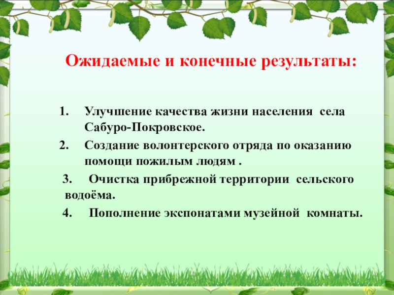Ожидаемые и конечные результаты: