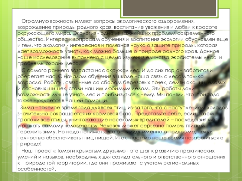 воспитать любовь и бережное отношение к природе, сочувствие к тем, кому зимой приходится трудно;