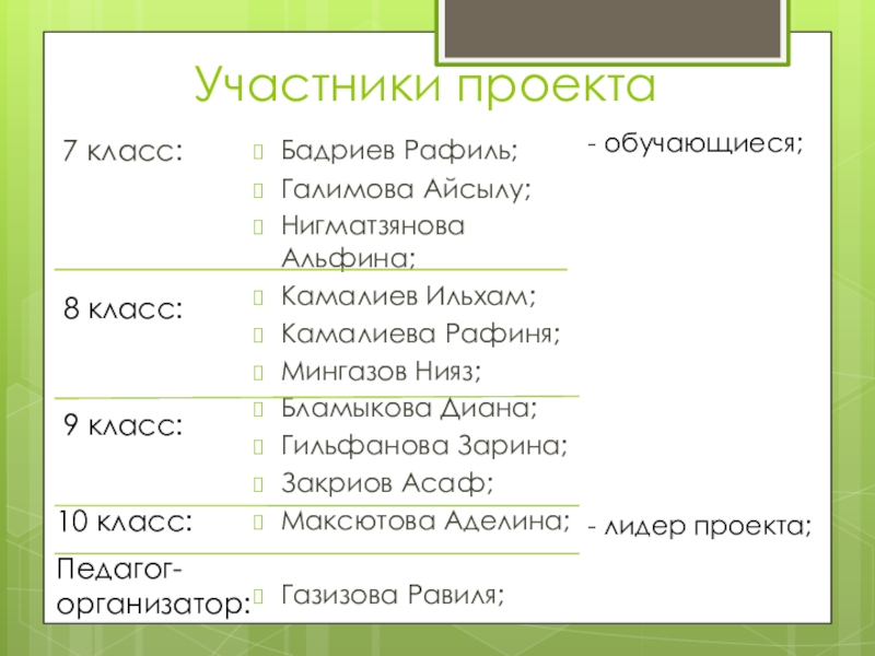 лидер проекта;