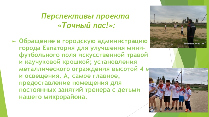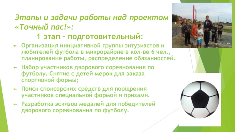 Организация инициативной группы энтузиастов и любителей футбола в микрорайоне в кол-ве 6 чел., планирование работы, распределение обязанностей.