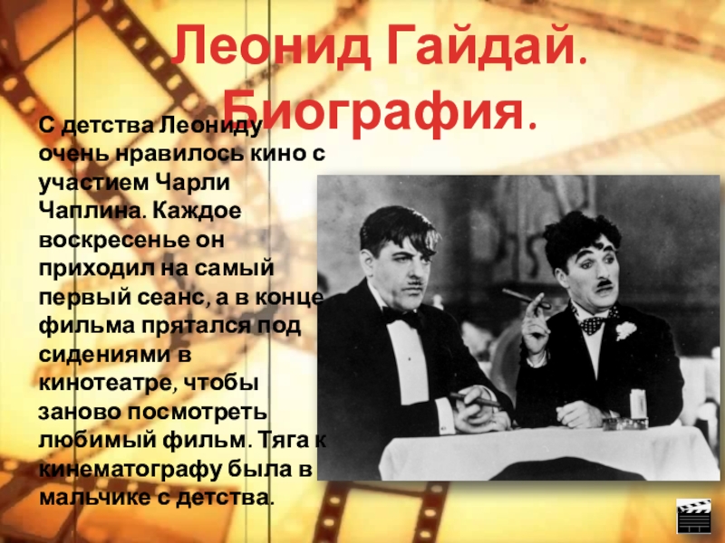 Чаплина. Каждое воскресенье он приходил на самый первый сеанс, а в конце фильма прятался под сидениями в кинотеатре, чтобы заново посмотреть любимый фильм. Тяга к кинематографу была в мальчике с детства.
