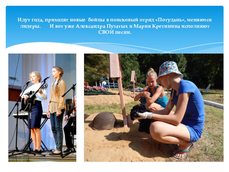 Слайд 11Идут года, приходят новые бойцы в поисковый отряд «Потудань», меняются лидеры.