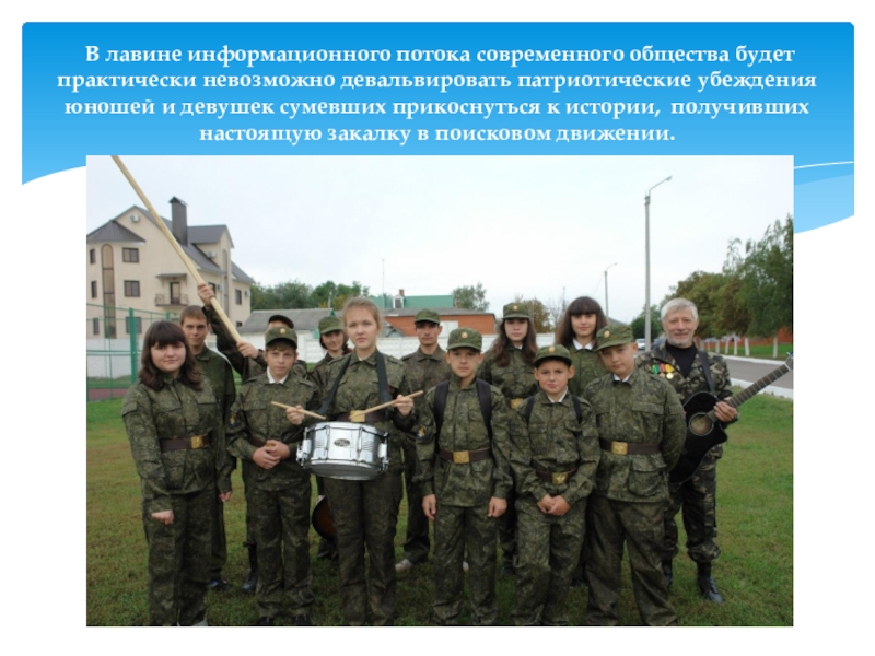 патриотические убеждения юношей и девушек сумевших прикоснуться к истории, получивших настоящую закалку в поисковом движении.