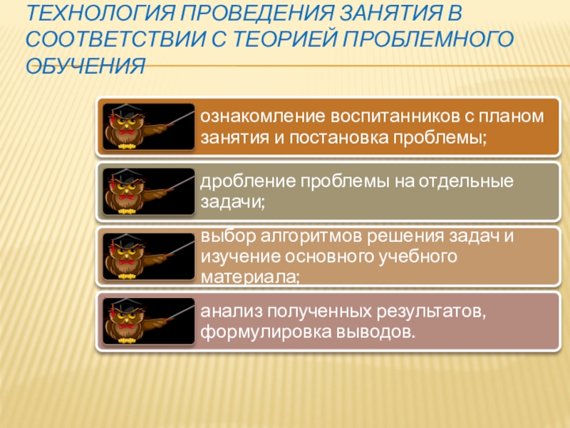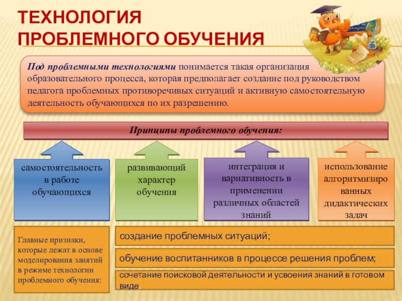 Главные признаки, которые лежат в основе моделирования занятий в режиме технологии проблемного обучения: