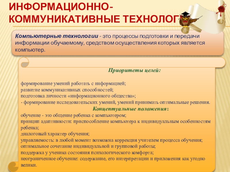Компьютерные технологии - это процессы подготовки и передачи информации обучаемому, средством осуществления которых является компьютер.
