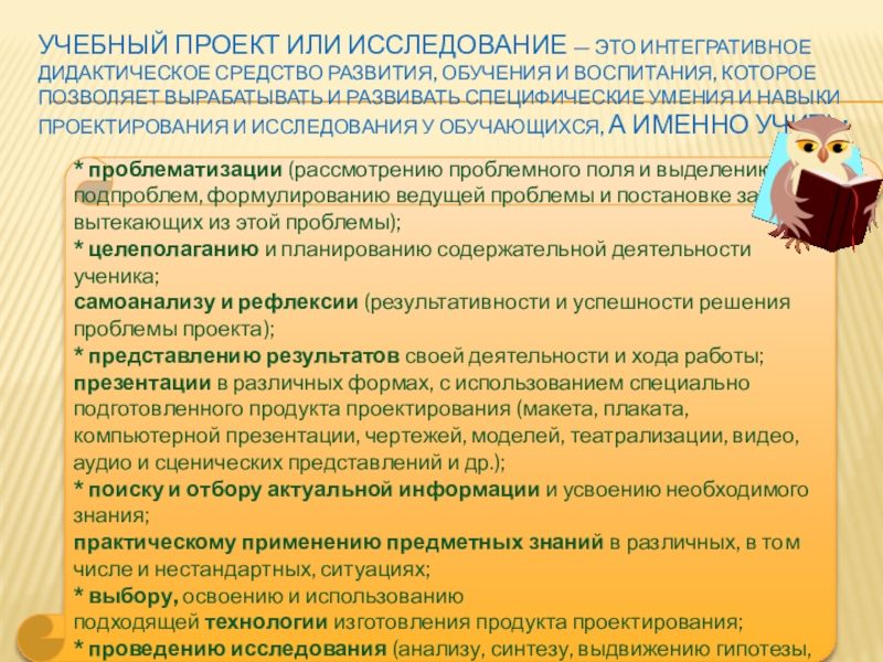 * целенаправленная учебная деятельность как особая форма активности ребенка, направленная на изменение самого себя как субъекта учения и т. д.