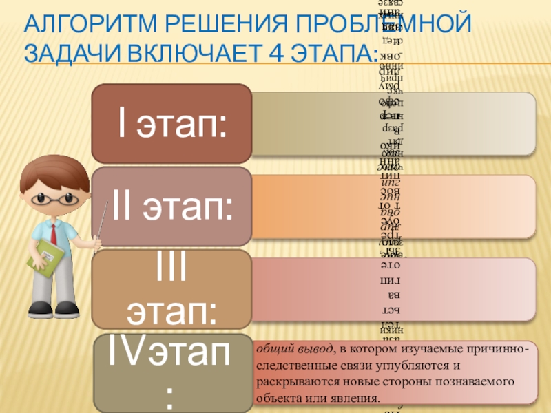 * проблематизации (рассмотрению проблемного поля и выделению подпроблем, формулированию ведущей проблемы и постановке задач, вытекающих из этой проблемы);
