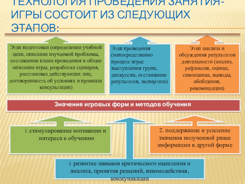 Этап проведения (непосредственно процесс игры: выступления групп, дискуссии, отстаивание результатов, экспертиза)
