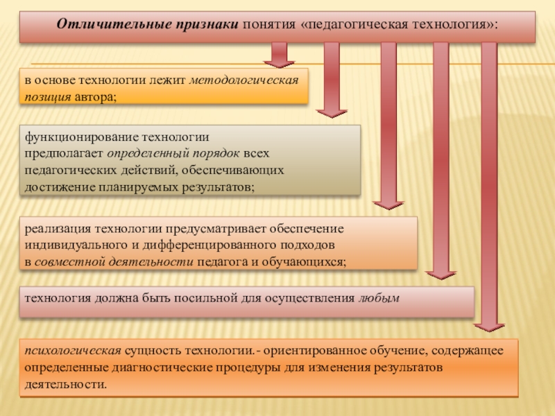 психологическая сущность технологии.- ориентированное обучение, содержащее определенные диагностические процедуры для изменения результатов деятельности.