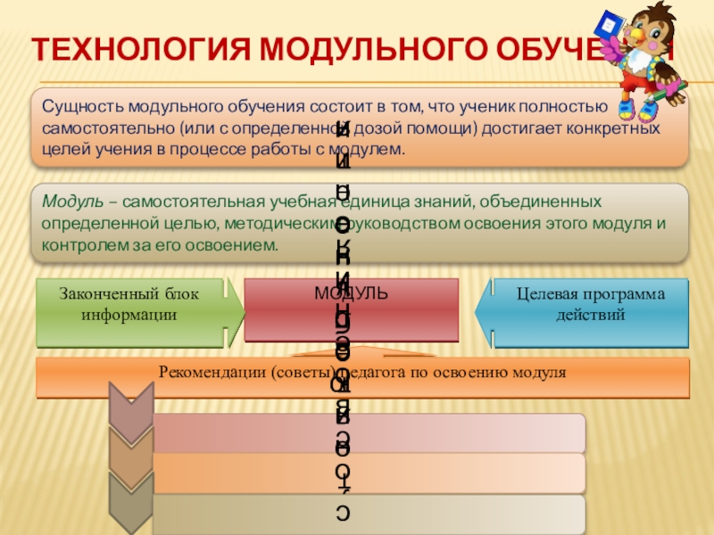 Модуль – самостоятельная учебная единица знаний, объединенных определенной целью, методическим руководством освоения этого модуля и контролем за его освоением.