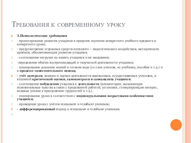 - планирование урока в соответствии с индивидуальными возрастными особенностями учащихся;