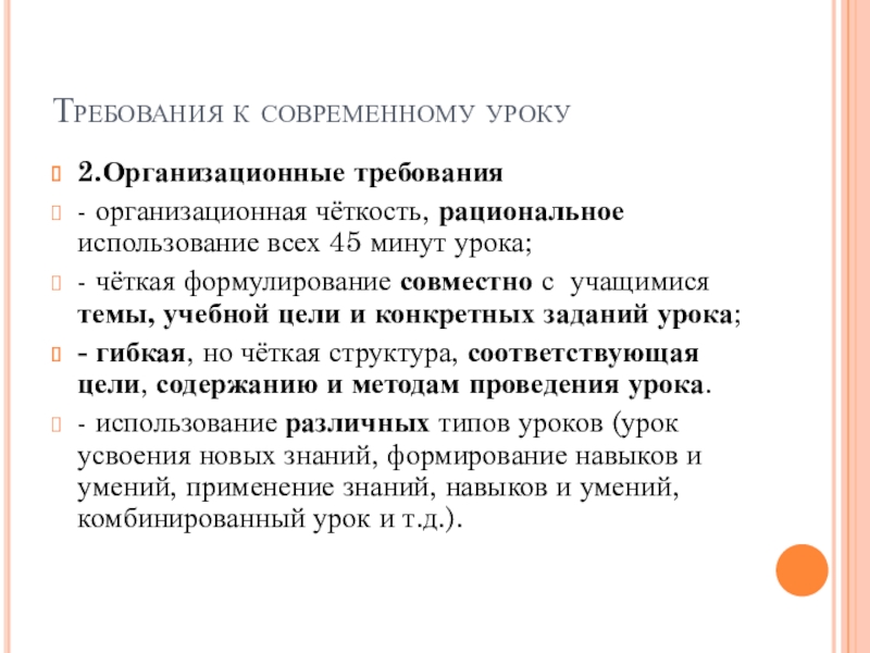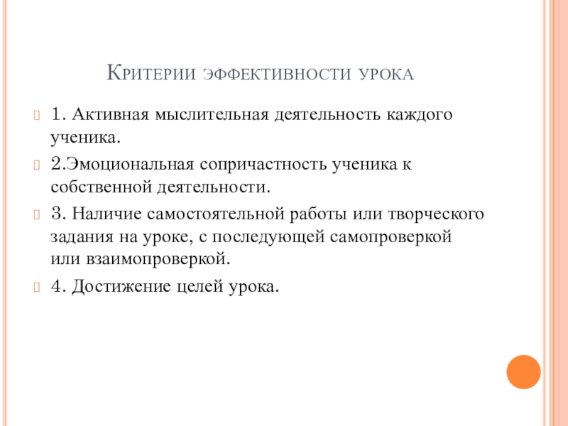 - чёткая формулирование совместно с учащимися темы, учебной цели и конкретных заданий урока;