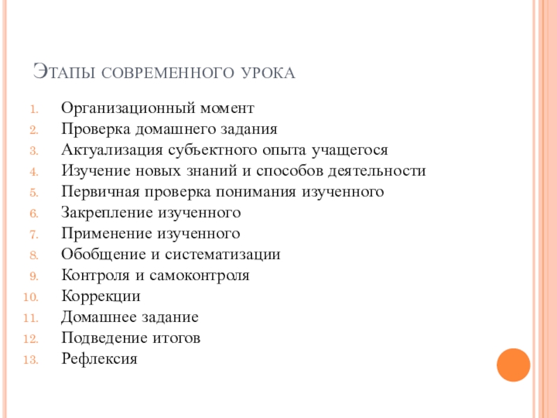 - гибкая, но чёткая структура, соответствующая цели, содержанию и методам проведения урока.