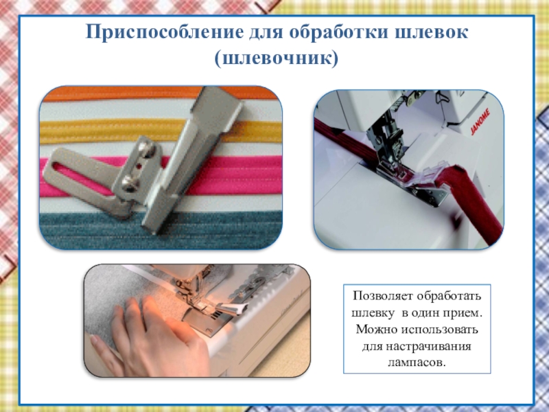 Слайд 15Приспособление для обработки шлевок (шлевочник)