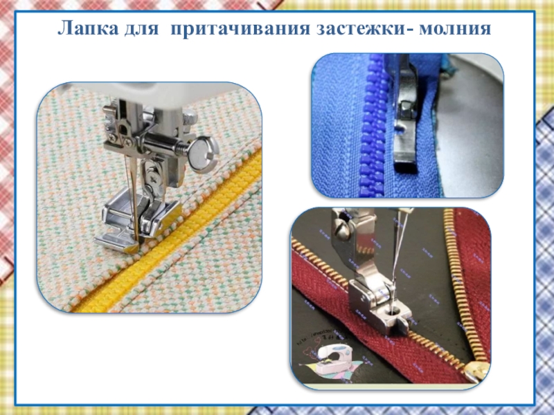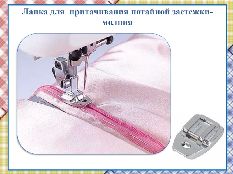 Слайд 21Лапка для притачивания потайной застежки- молния