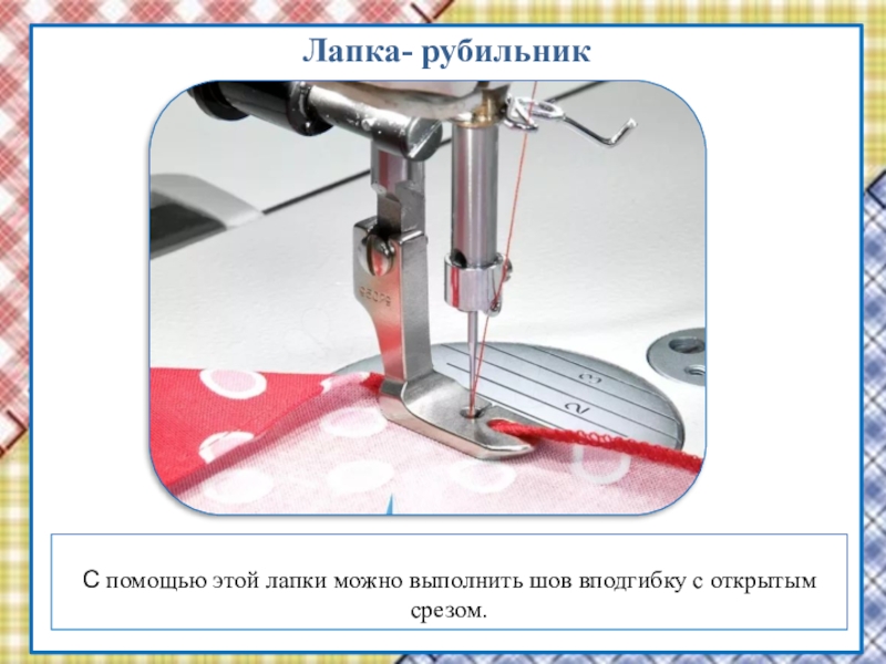 Лапка- рубильникС помощью этой лапки можно выполнить шов вподгибку с открытым срезом.