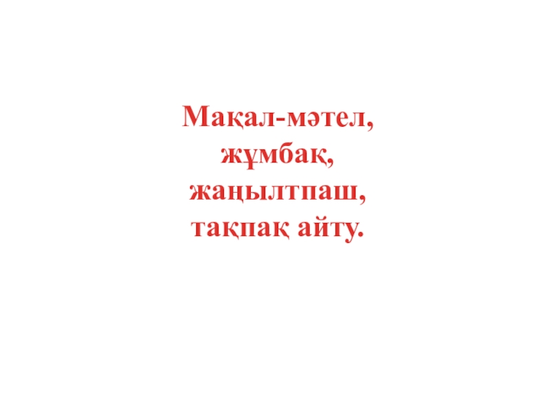 Мақал-мәтел, жұмбақ, жаңылтпаш,тақпақ айту.