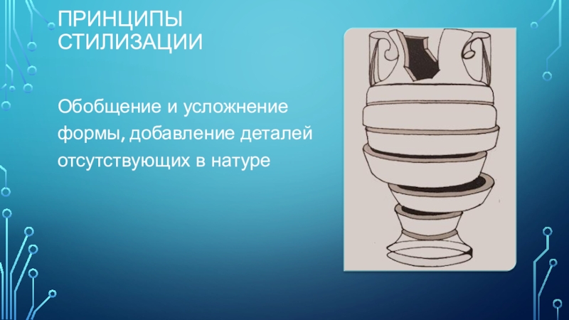Принципы стилизацииОбобщение и усложнение формы, добавление деталей отсутствующих в натуре