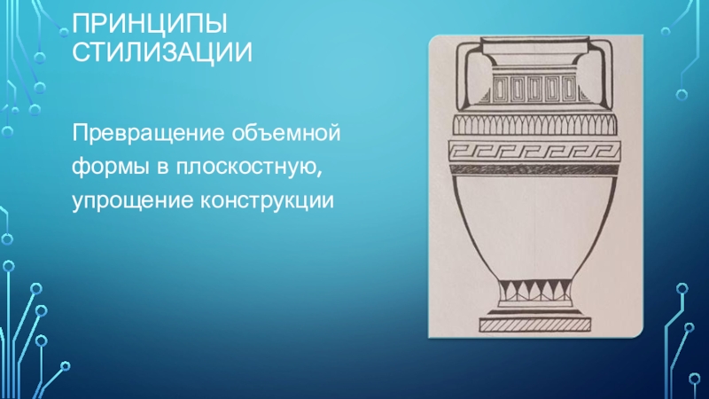 Принципы стилизацииПревращение объемной формы в плоскостную, упрощение конструкции