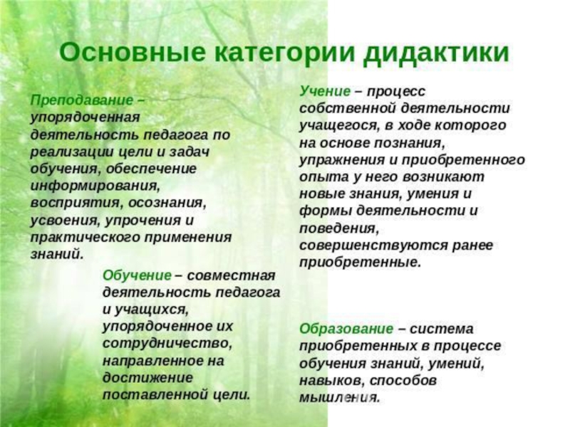 В первую очередь в процессе обучения учащимися должна быть усвоена система теоретических понятий, выражающих собой наиболее общие и существенные знания предмета.