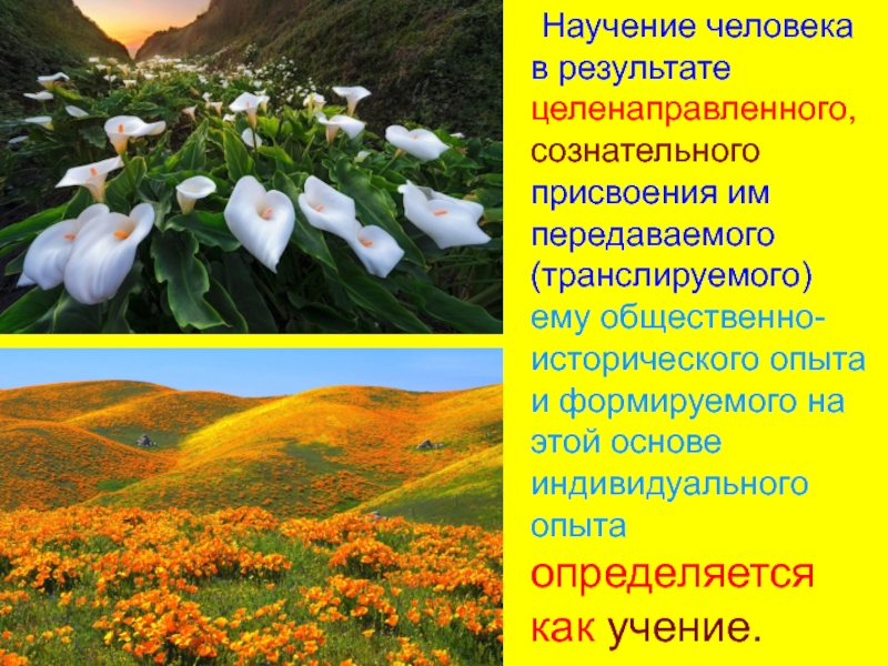 Слайд 18 Научение человека в результате целенаправленного, сознательного присвоения им передаваемого (транслируемого) ему