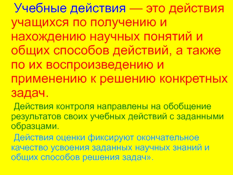Слайд 14 Учебные действия — это действия учащихся по получению и нахождению научных