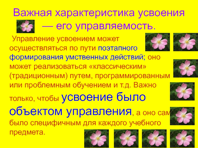 Слайд 23Важная характеристика усвоения — его управляемость.