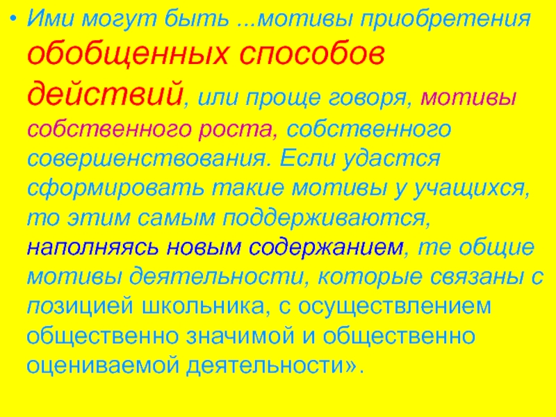 Слайд 3Ими могут быть ...мотивы приобретения обобщенных способов действий, или проще говоря,