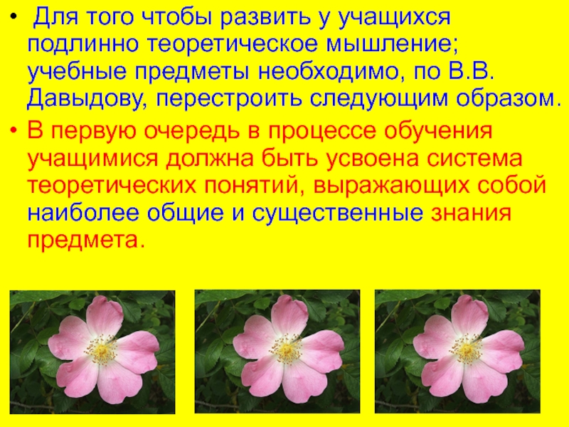 Слайд 8 Для того чтобы развить у учащихся подлинно теоретическое мышление; учебные