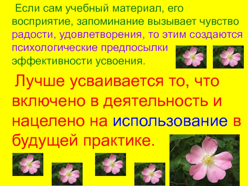 Слайд 22 Если сам учебный материал, его восприятие, запоминание вызывает чувство радости, удовлетворения,