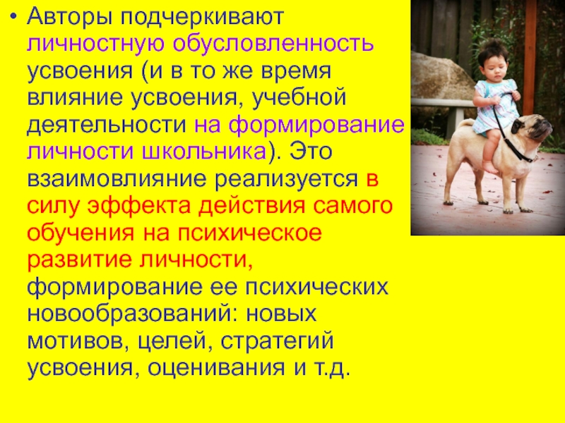 Слайд 24Авторы подчеркивают личностную обусловленность усвоения (и в то же время влияние
