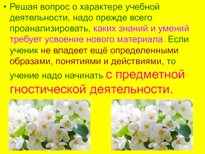 знаний и умений требует усвоение нового материала. Если ученик не владеет ещё определенными образами, понятиями и действиями, то учение надо начинать с предметной гностической деятельности.