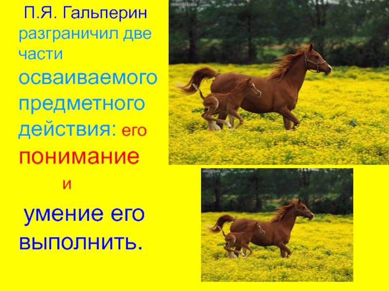 Слайд 28 П.Я. Гальперин разграничил две части осваиваемого предметного действия: его понимание