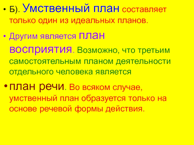 Слайд 31Б). Умственный план составляет только один из идеальных планов.