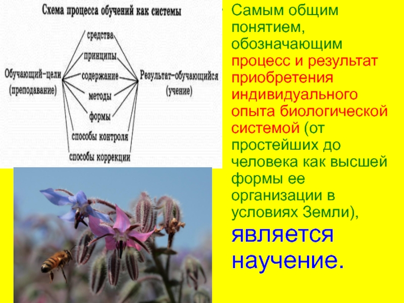 Слайд 17Самым общим понятием, обозначающим процесс и результат приобретения индивидуального опыта биологической