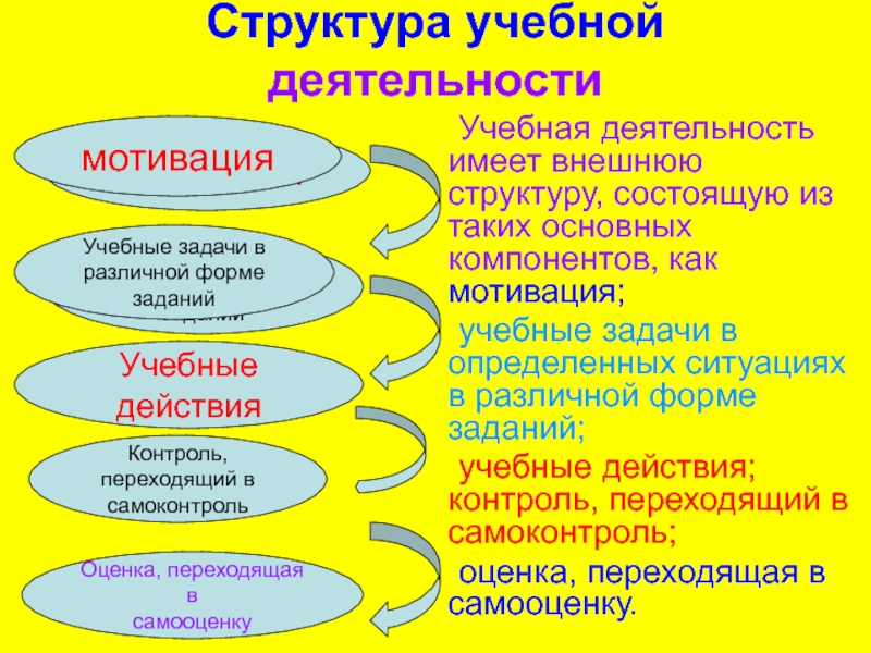 Учебная деятельность имеет внешнюю структуру, состоящую из таких основных
