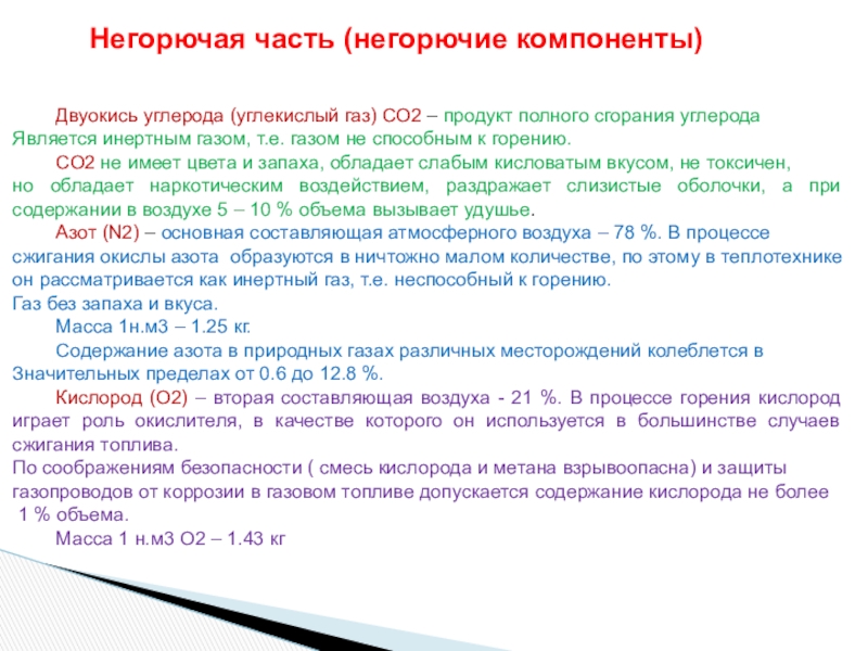 Состав доменного газа: водород (Н) – 14; метан (СН4) – 1; окись углерода (СО) – 28; углекислый газ (СО2) – 6; кислород (О2) – 0.2; сероводород (Н2S) – 0.2; азот (N2) – 50.6.