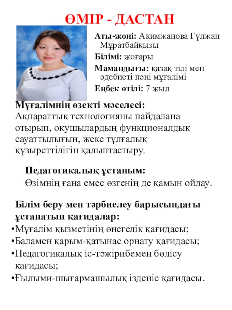 Ұстаз - жас ұрпақтың рухани сәулеткері, қоғамның сенімді өкілі.