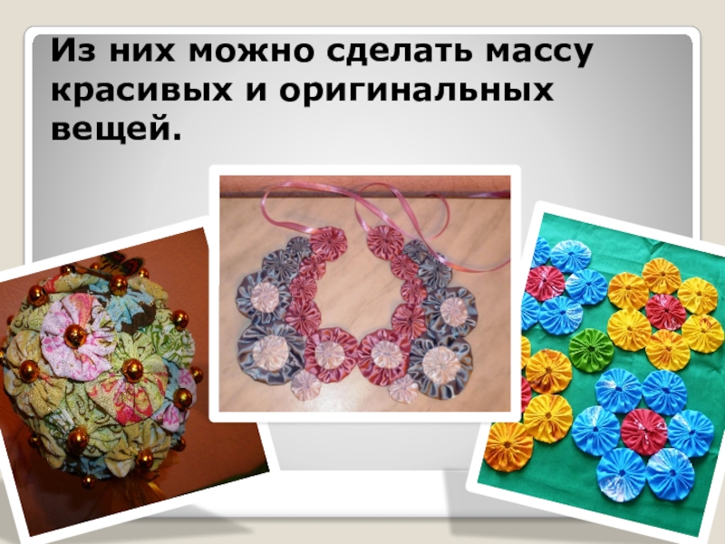 Слайд 7Из них можно сделать массу красивых и оригинальных вещей.