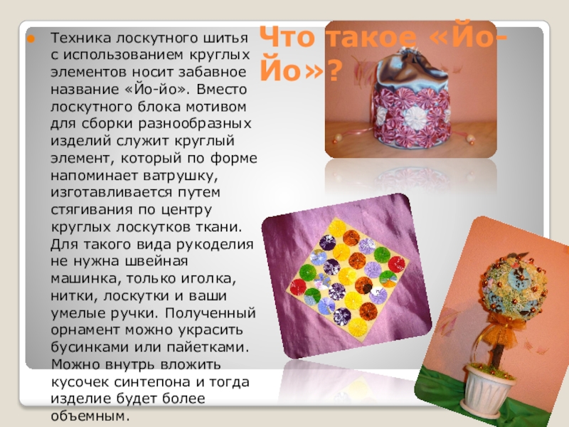 Презентация, доклад на тему Техника лоскутного шитья Йо-Йо