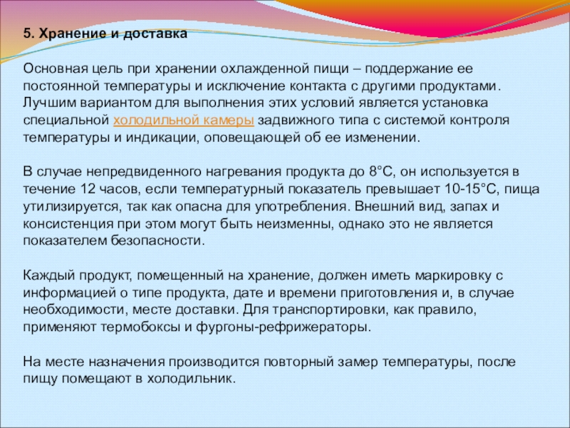Основная цель при хранении охлажденной пищи – поддержание