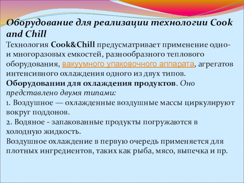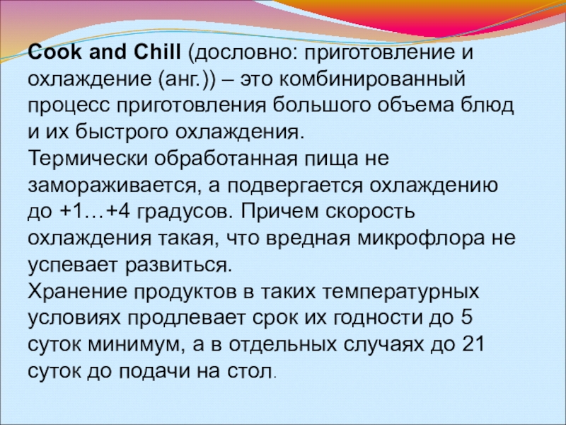 Слайд 3Cook and Chill (дословно: приготовление и охлаждение (анг.)) – это комбинированный процесс