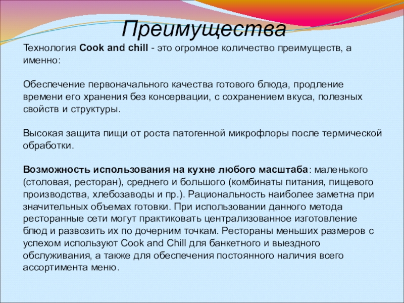Технология Cook and chill - это огромное количество преимуществ, а именно: