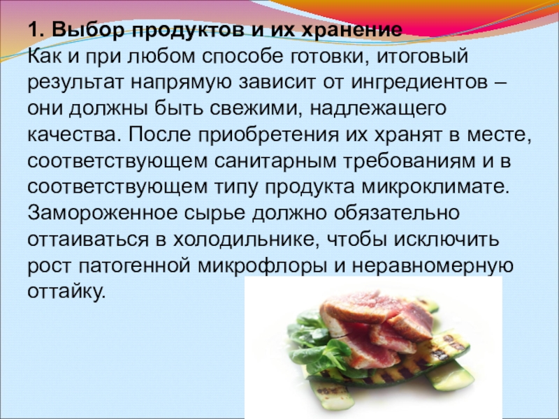 Слайд 141. Выбор продуктов и их хранение
