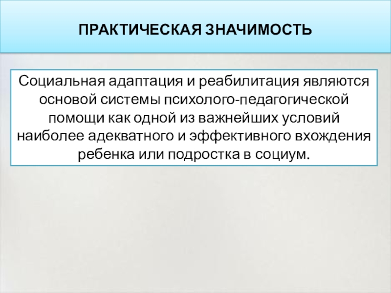 Социальная адаптация и реабилитация являются основой системы психолого-педагогической помощи